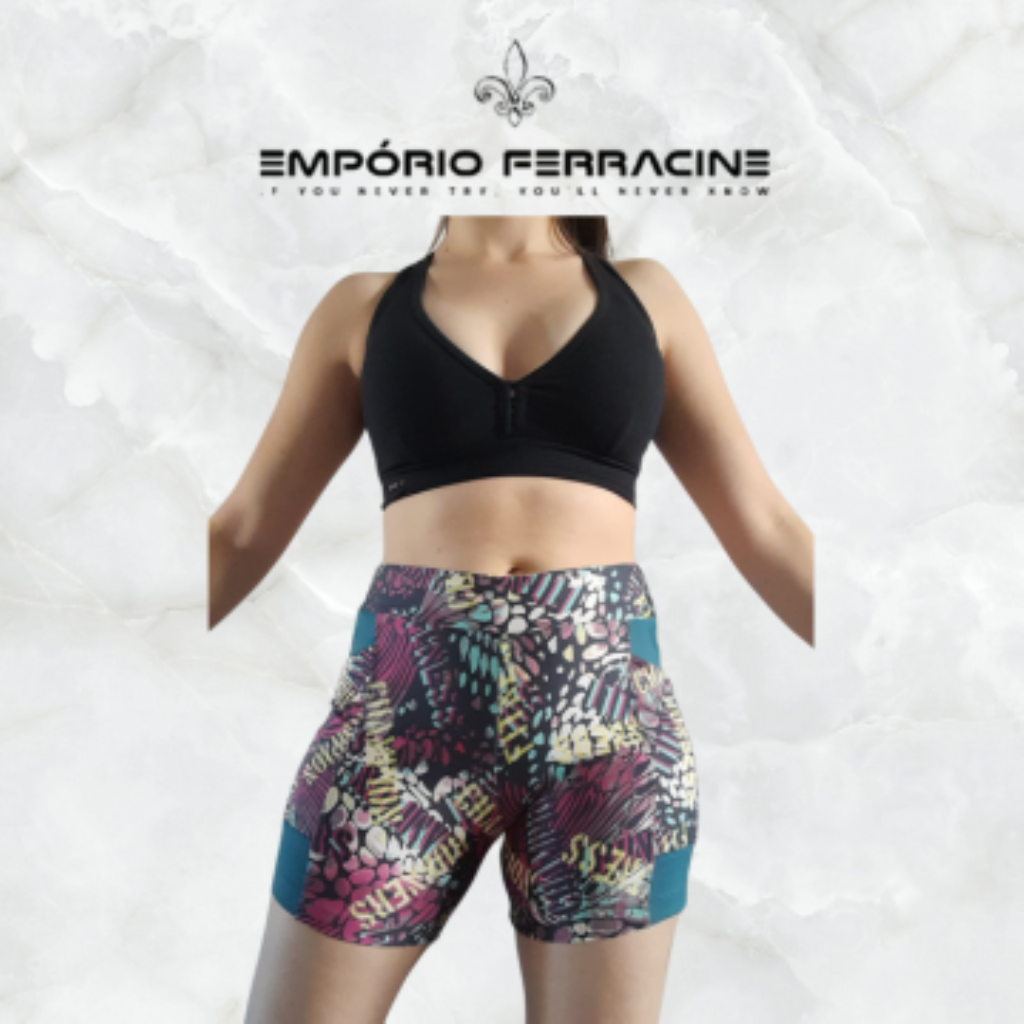 Conjunto tamanho G (Croppet preto e Shorts Colorido).